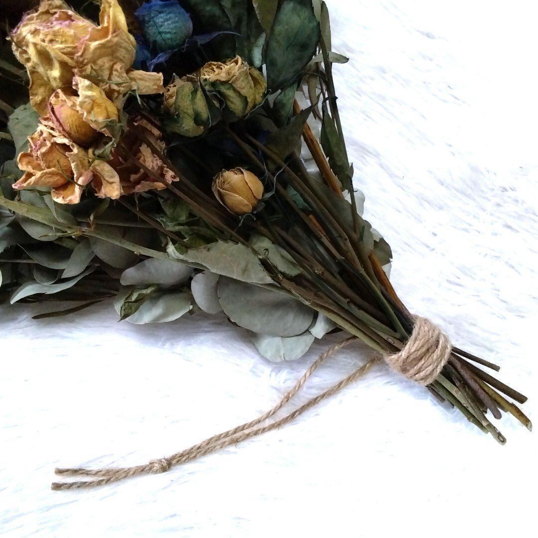 アンティークカラーのピンク・グリーン・ブルー系の薔薇、赤いケイトウ、丸葉ユーカリ、ニコリーなど(*^^*)