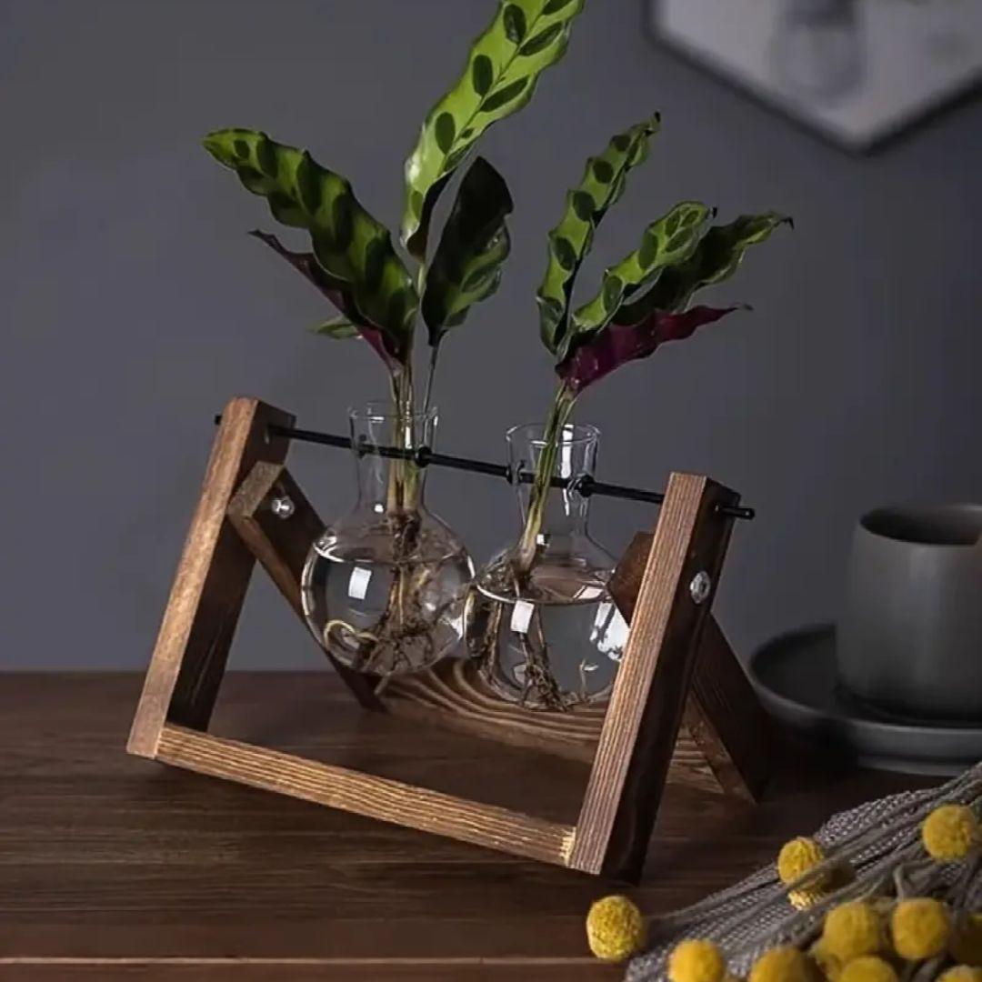 木製スタンド付きの、ガラス花瓶2個セットです☆
